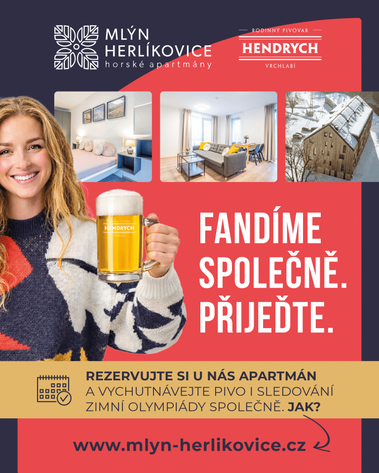 FANDÍME SPOLEČNĚ NA HORÁCH Zalyžujte si, zajděte do wellness… a večer přijďte fandit společně. Ve společenské místnosti ve Mlýn Herlíkovice máme: velkou televizi vytištěný program …