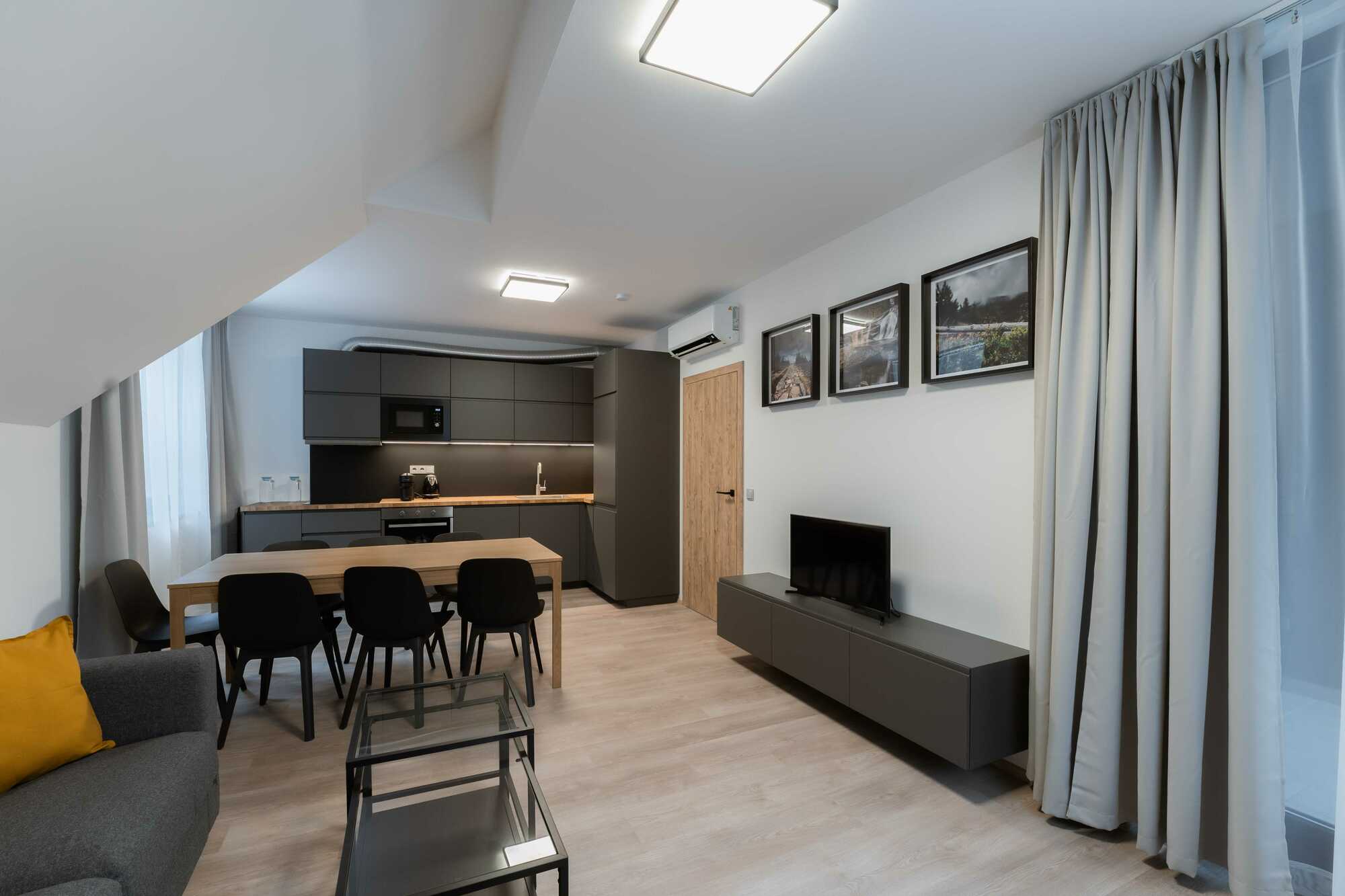 Apartment 5kk of 129 m2 with five rooms that serve as a living room and four bedrooms. In the room you will find a sofa bed and in the bedrooms a double bed. The apartment has a bathroom with a toilet, separate toilet and a kitchenette.